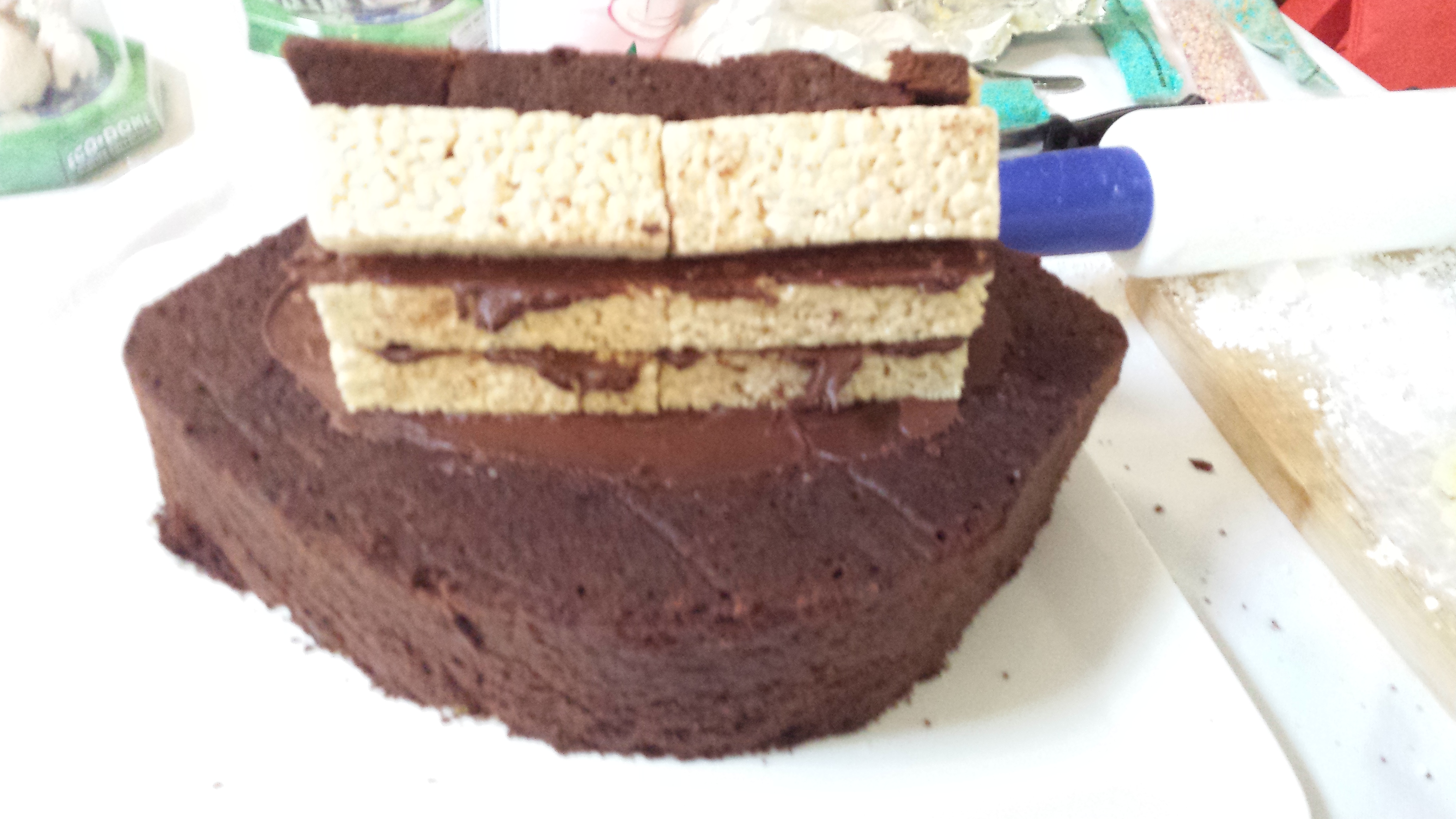 Cover with butter cream icing in a thin later.